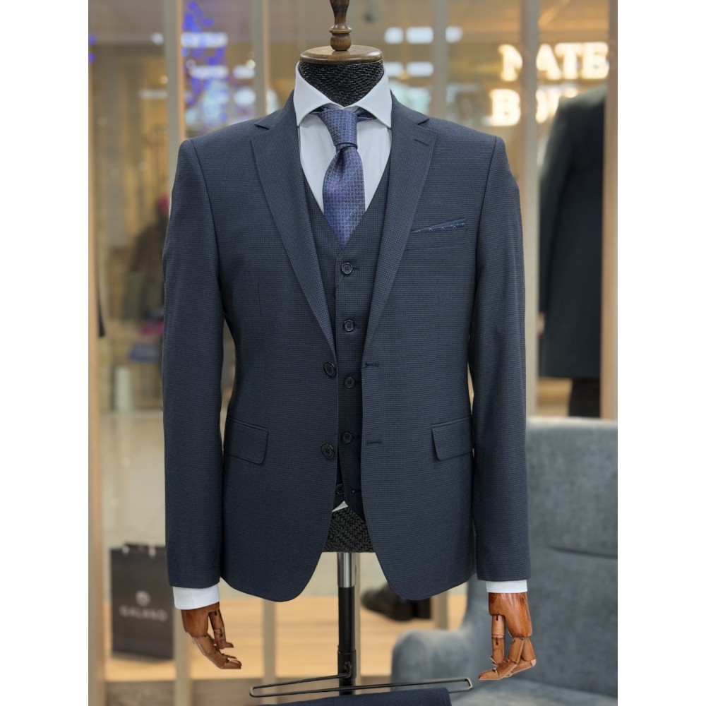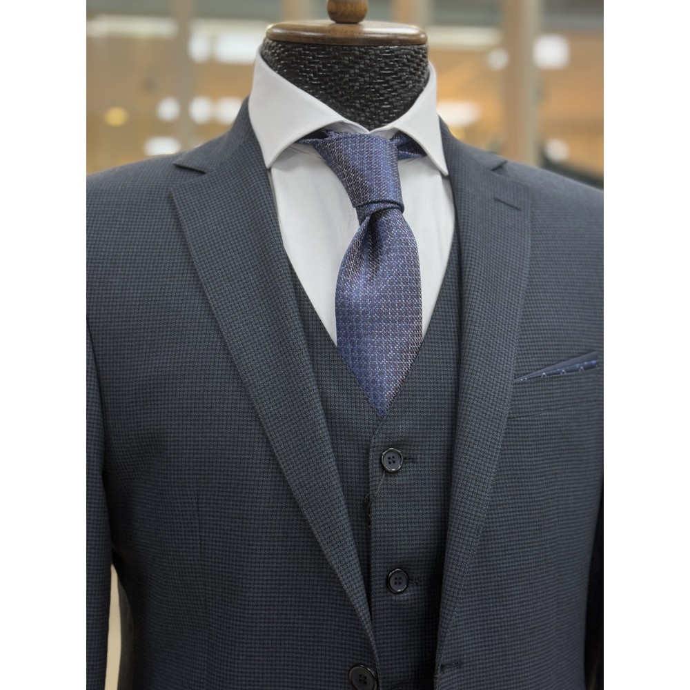 Костюм тройка синий рисунок гусиная лапка