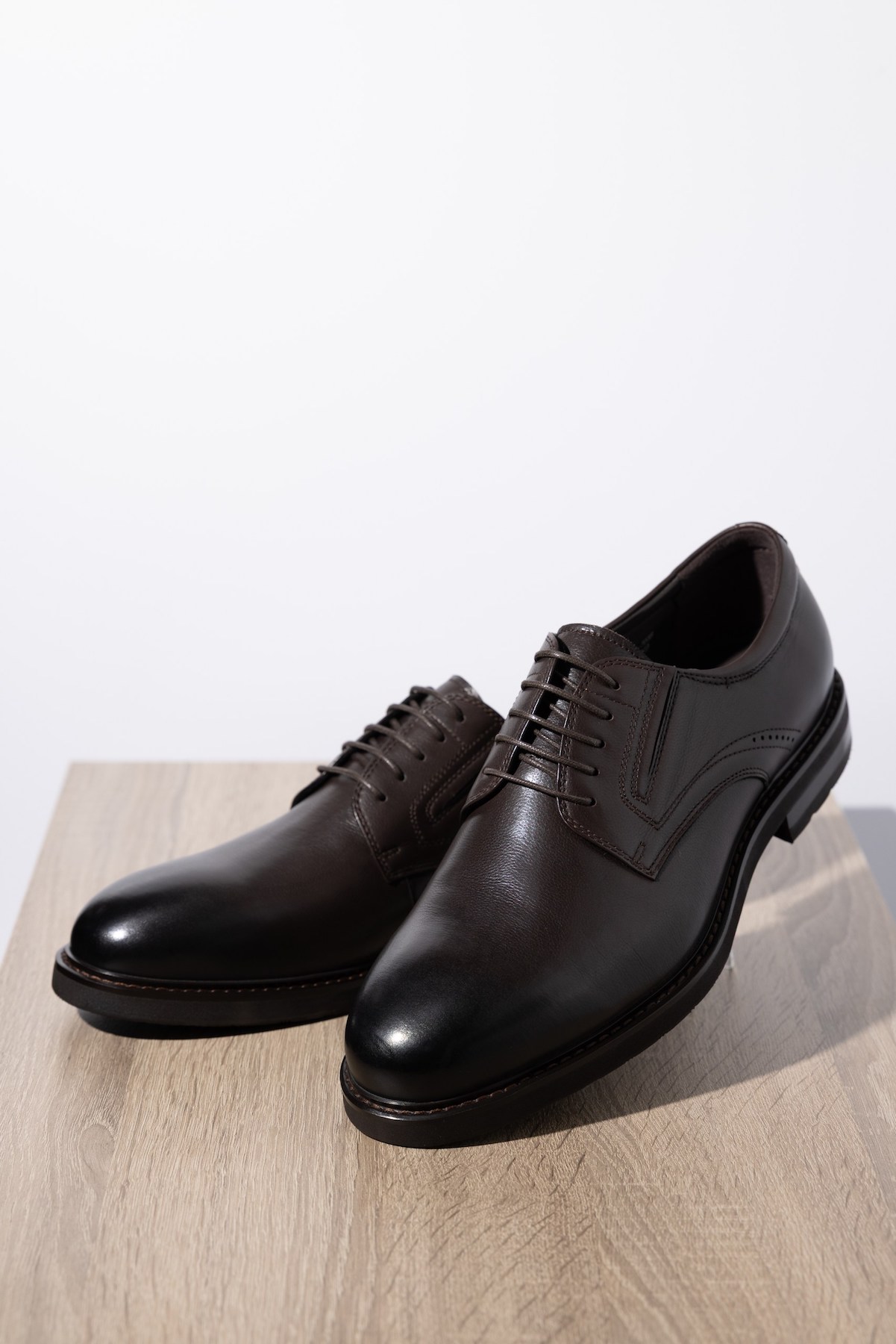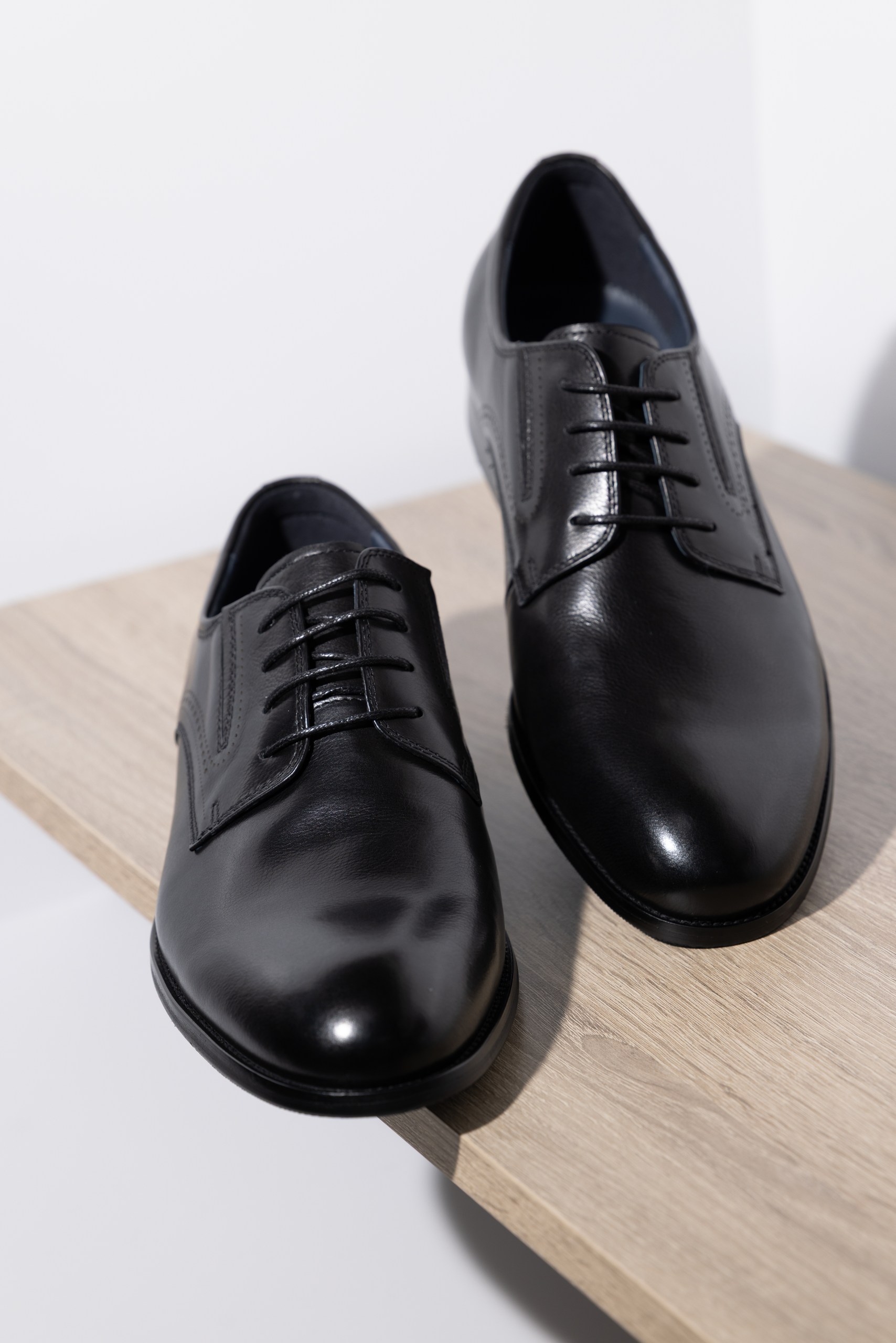Дерби имеют классическую форму с острым, но закругленным носом и обязательную открытую шнуровку. Традиционно выпускаются в черном, рыжем и коричневом цветах, но есть вариации в оттенках синего и бордо, которые подойдут для серых костюмов или кэжуал-брюк.